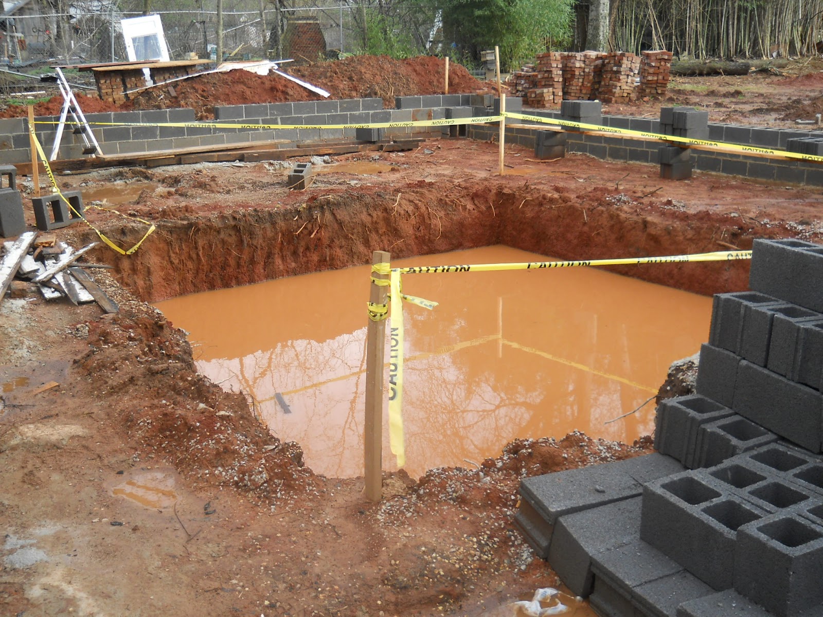 I always wanted a swimming pool, although I imagined one with sparkling blue water and not necessarily under my soon-to-be kitchen. I guess beggars can't be choosers. By the way, that is about 6 feet of water in that abyss called a storm shelter. I am sure the geese next door would love it!